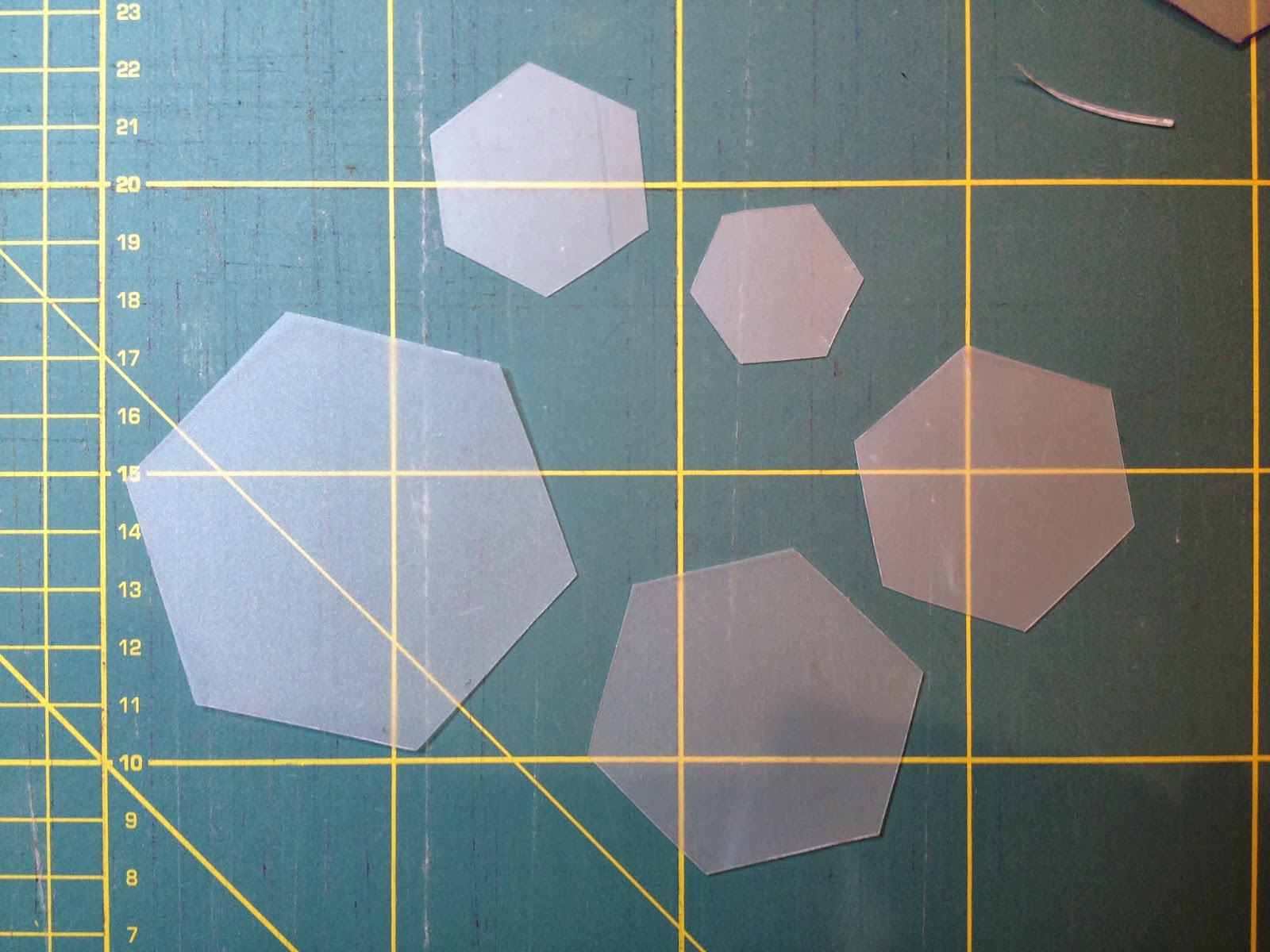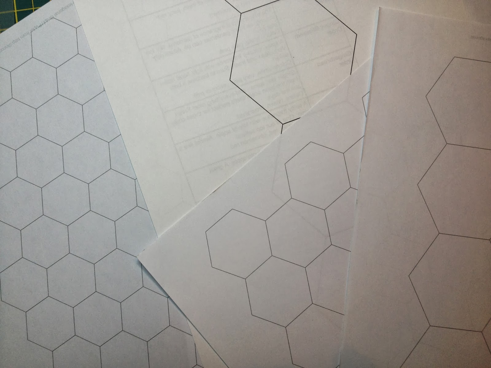 We then use our plastic pattern in order to draw on a piece of paper the hexagon as many times as the number of hexagons we need. We cut them: