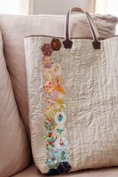 On this photo hexagons have been sewn on two stripes and appliqued on a bag of Amanda Jenings. The result is very classy.