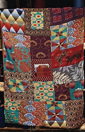 He worked for Victoria and Albert Museum, where there are many antique quilts. He was inspired by them and made his own collection. He was the first artist who had this one-man-show in the Museum, while alive. This exhibition travelled to 9 countries. You can see two quilts of this collection below: