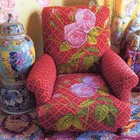 You may like the work or Kaffe Fassett or you may not like it. One thing is sure, that you may not pass by without notice it (on the photo below you can see hin in his house)