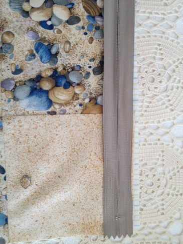 Έχουμε τώρα στερεώσει το φερμουάρ και στις δυο πλευρές. Αν όλα έχουν πάει καλά, που είμαι σίγουρη ότι θα έχουν πάει, ανοίγοντας τα υφάσματα, η εικόνα θα πρέπει να είναι αυτή: