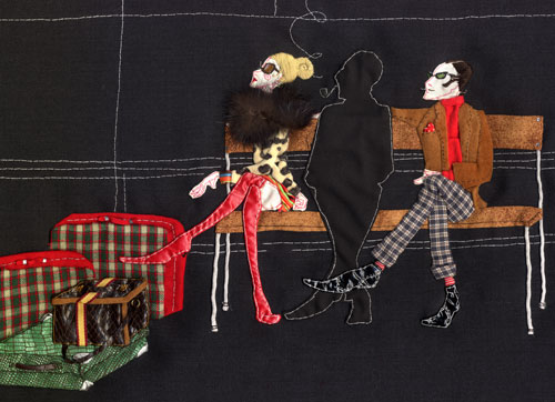 Different style today. A little bit about painting, a little bit about fabric, a little bit about embroidery. She is Spanish who started her career as a painter and from the decade of 90 and on started experimenting with fabric pieces and embroidery. Her clients, as you may see on her site, are fashion magazines, publishing companies, international companies.