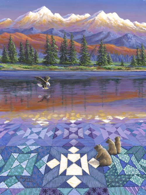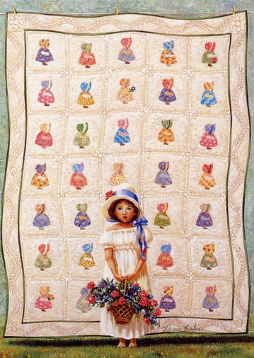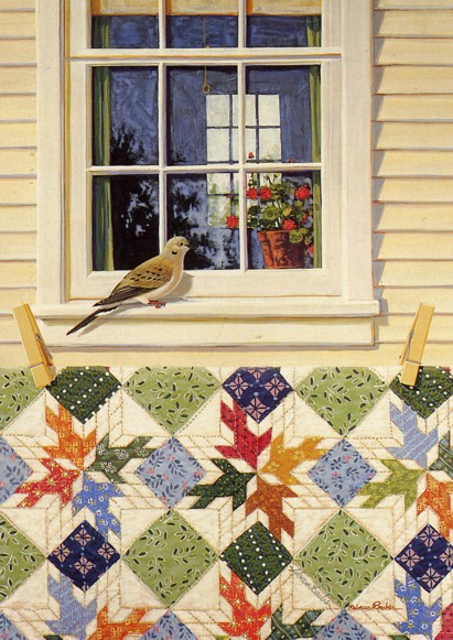 Έχει ζωγραφίσει μια σειρά έργων που αποκαλεί “QUILTSCAPES.” Το κάθε έργο αντλεί τον τίτλο του από το σχέδιο του παπλώματος που φαίνεται κάπου στη σύνθεσή του. Ας δούμε όμως κάποια από τα έργα της: