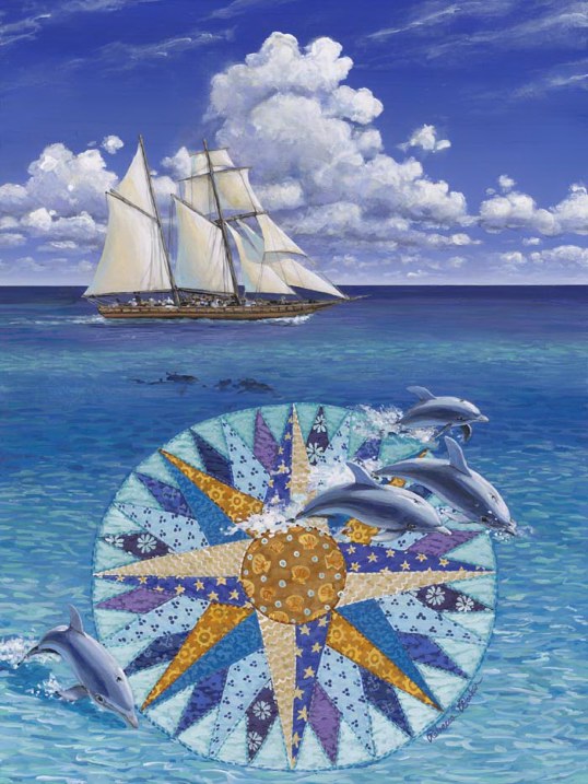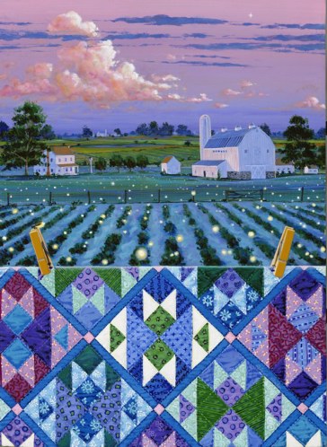 She painted a collection named “QUILTSCAPES”. Every painting takes its names after the quilt pattern depicted somewhere. Let us have a look at some of her paintings: