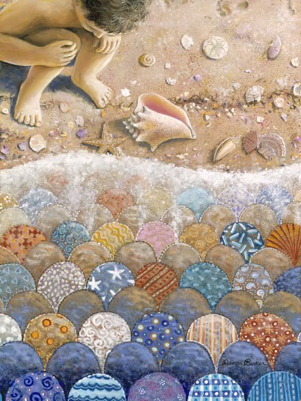 Rebecca Barker grew up in a farmhouse in Ohio. She draw her inspiration by from her childhood and the memories of the many quilts that surrounded her. She started painting at the age of ten and her studies were relevant.