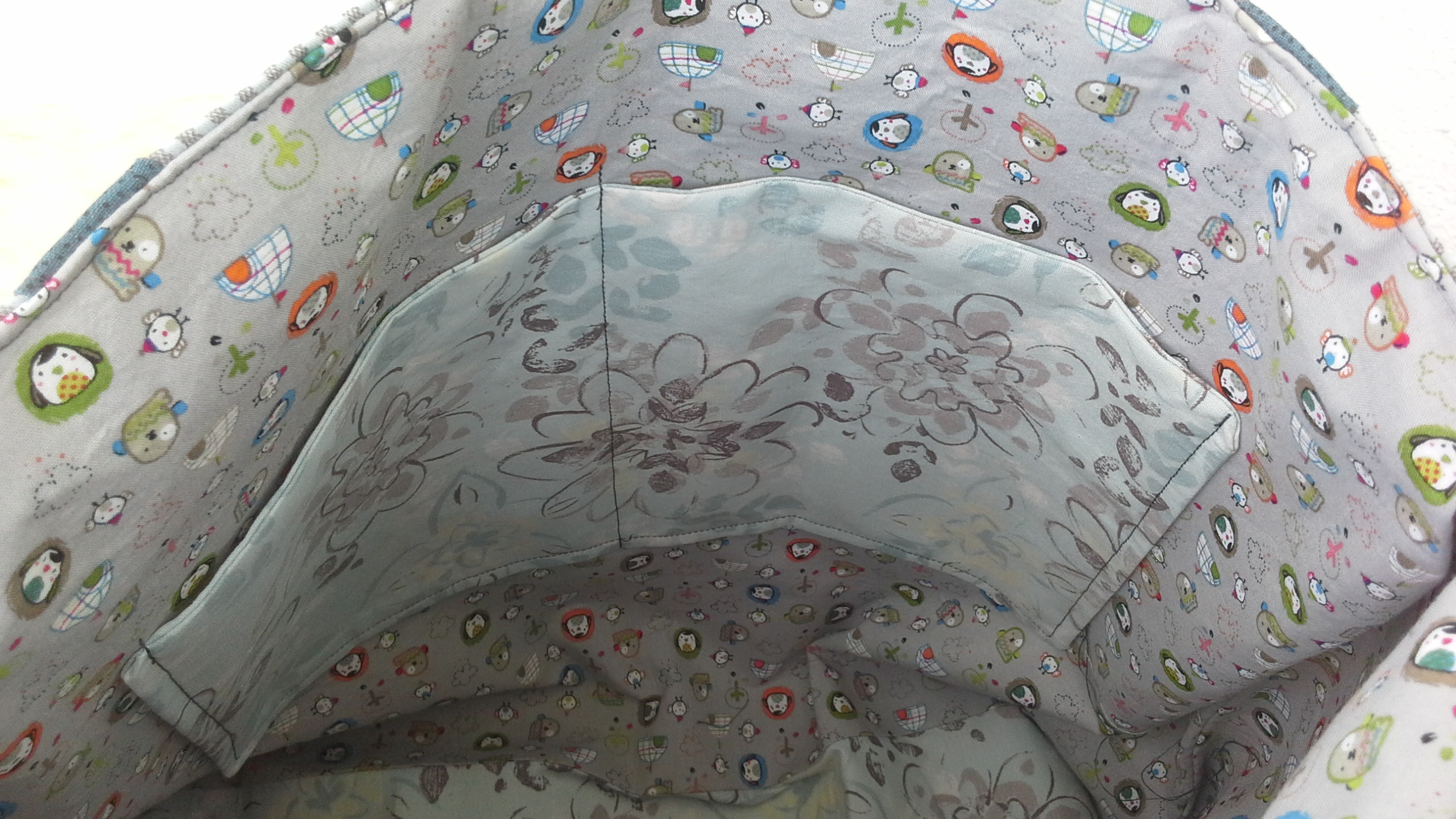 Μέσα έβαλα σε κάθε πλευρά από δυο τσέπες και μετάνιωσα που δεν αυτοσχεδίασα να βάλω και μια εξωτερική τσέπη με φερμουάρ στην πίσω πλευρά. Δεν πειράζει. Στην επόμενη