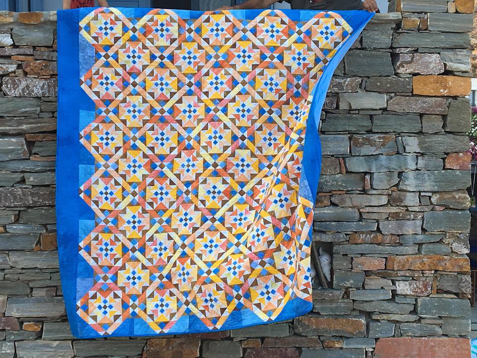 Do you remember that I posted about Bonnie Hunter’s 2017 quilt here? It is almost time for her new quilt and I had not finished the previous. Not that I will ever make another quilt this style. Even now that it has finished and it fits very well in the room I had plan to put it, even now I do not think that it represents me at all, except from the colors. But as a friend said, every quilter should have a quilt like this!