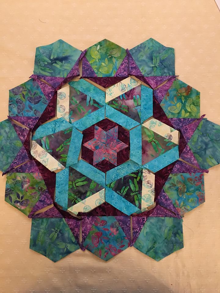 I love the milllifiore patterns and yours looks terrific. Hope to get back to mine in the next few months – my approach is a smaller batik project for this month. Love love love your project.