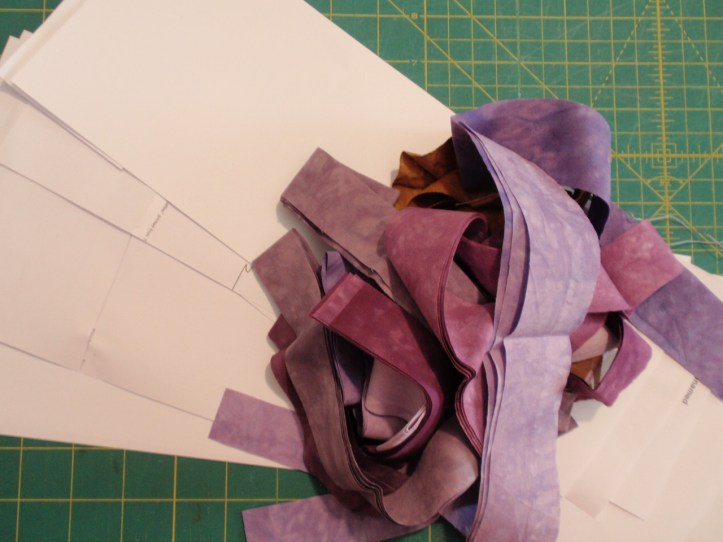 I made most of the pieces in FPP technique I cut stripes of different width from all my fabrics. I cut in the middle A4 papers.