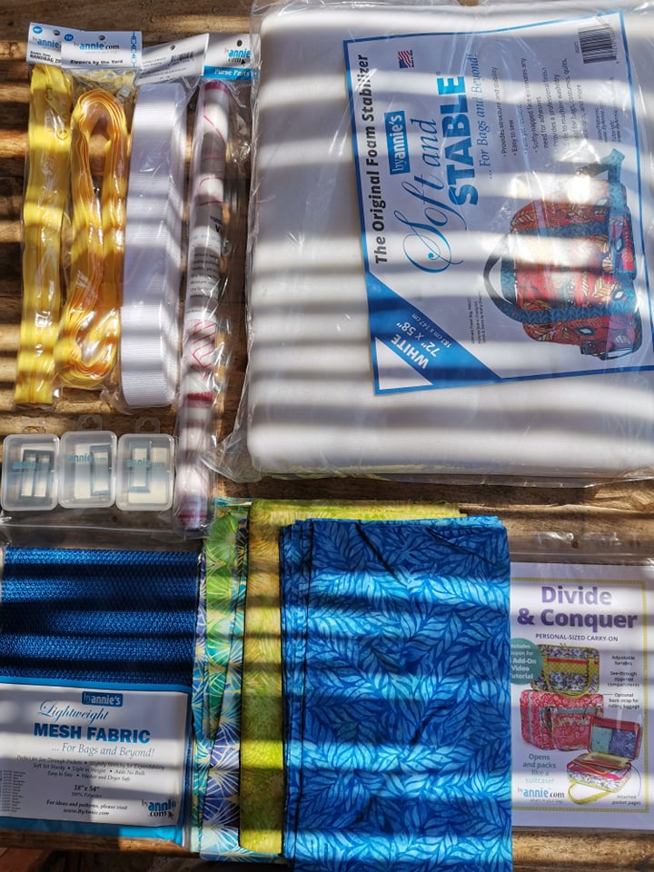 One big surprise was in the box! We were asked earlier which pattern of by Annie.com we wanted to make. I have made several patterns by this company. Therefore I chose a big pattern, that I have made several times with some alterations, divide and conquer. It is a big suitcase, so I will be able to know many of the materials Anniw uses. Especially soft and stable.