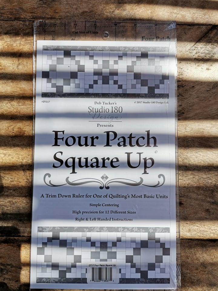 And another one -I promise the last- surprise. One ruler by Deb Tucker Studio Design 180. Deb Tucker introduces to us many ruller that help us cutting many blocks. I got the Four Patch Square Up and you will see what I am going to do for August.