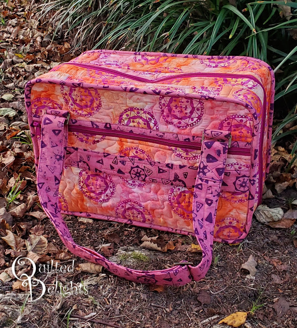 Την ίδια μέρα χρησιμοποίησε την ίδια συλλογή η Leah Malasky από το μπλογκ Quilted Delights για να φτιάξει τη δική της εκδοχή της τσάντας Divide and Conquer.Μπορείτε να δείτε περισσότερες λεπτομέρειες εδώ. Μπορείτε να τη συγκρίνετε με τη δικιά μου εκδοχή για να δείτε πόσο διαφορετικό αποτέλεσμα βγαίνει χρησιμοποιώντας το ίδιο πατρόν αλλά διαφορετικά υφάσματα.
