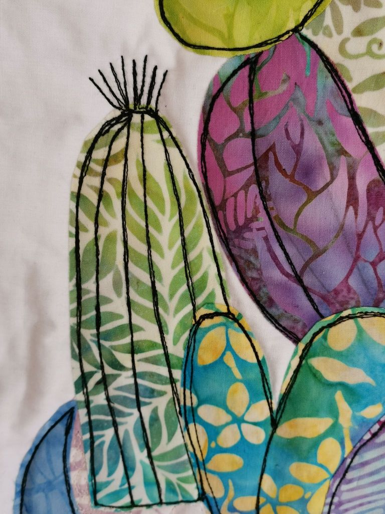 Your cacti is a perfect showcase for these stunning fabrics. I love your thread painting. It just “finishes” the project! 😉