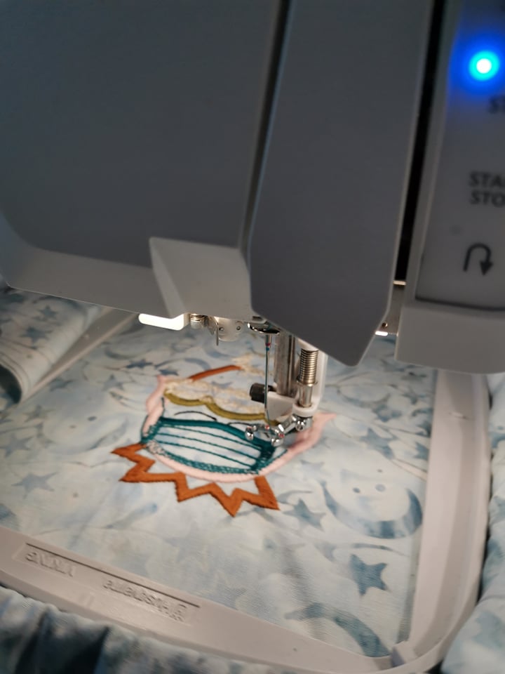 and the badges that were embroidered and then appliqued on the quilt. All patterns were from Alphalicious Designs site.