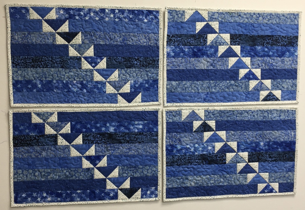 Η Gail από το μπλογκ Quilting Gale έφτιαξε κι εκείνη τα σουπλά της με την τεχνική των ιπτάμενων χηνών. Εάν θέλετε περισσότερες λεπτομέρειες, ρίξτε μια ματιά εδώ.