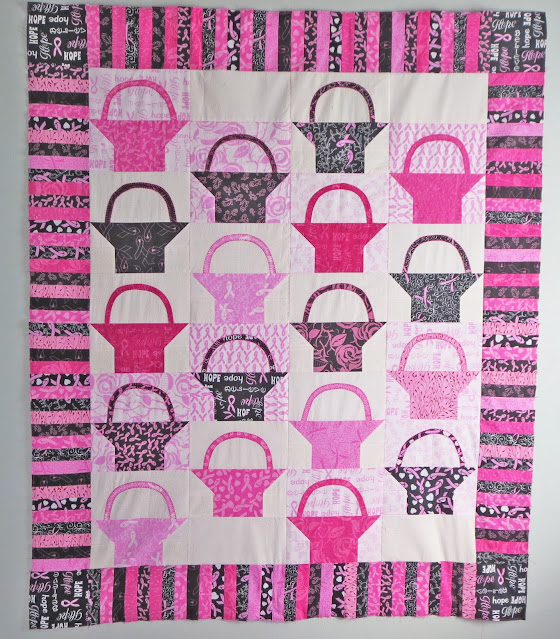H Τέρρυ από το μπλογκ Lizard Creek Quilting μοιράζεται τη δική της πρόσφατη ιστορία με τον καρκίνο του μαστού. Χρησιμοποίησε τη συλλογή Heart and Hope που της έστειλαν τα Island Batik για να κάνει ένα πάπλωμα γεμάτο καλάθια, μια και τα αγαπάει πολύ. Μορείτε, αν θέλετε και σας αρέσει το σχέδιο, να το αγοράσετε εδώ.