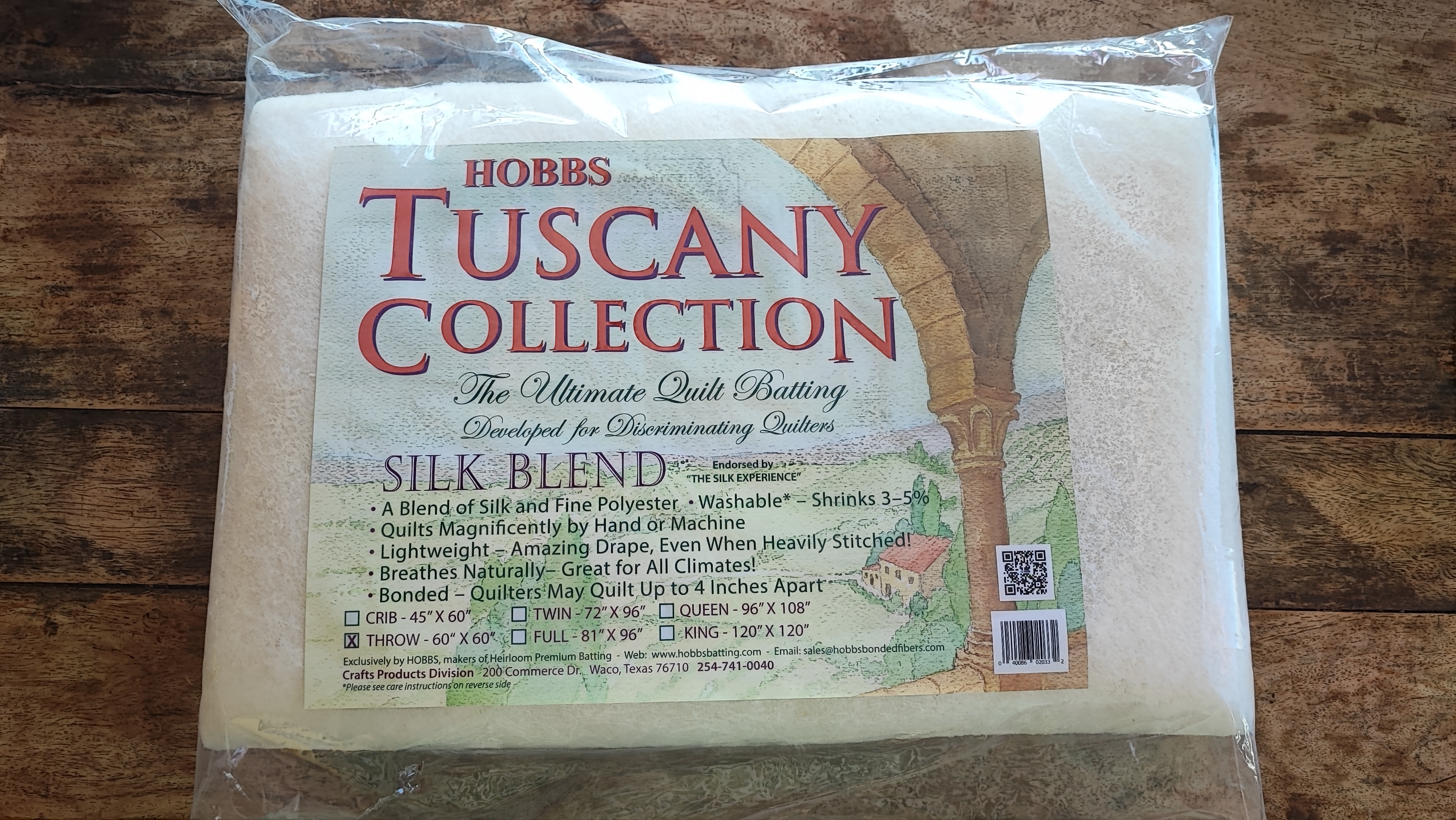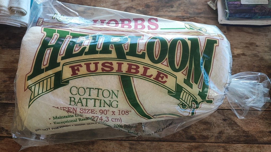 And now the batting by Hobbs. One piece of 80/20 cotton black batting, queen size.