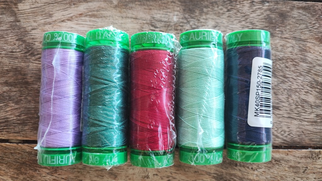 Tα υφάσματα τελείωσαν. Ας δούμε όμως και τα υπόλοιπα καλούδια μας. 5 κλωστές από την Aurifil