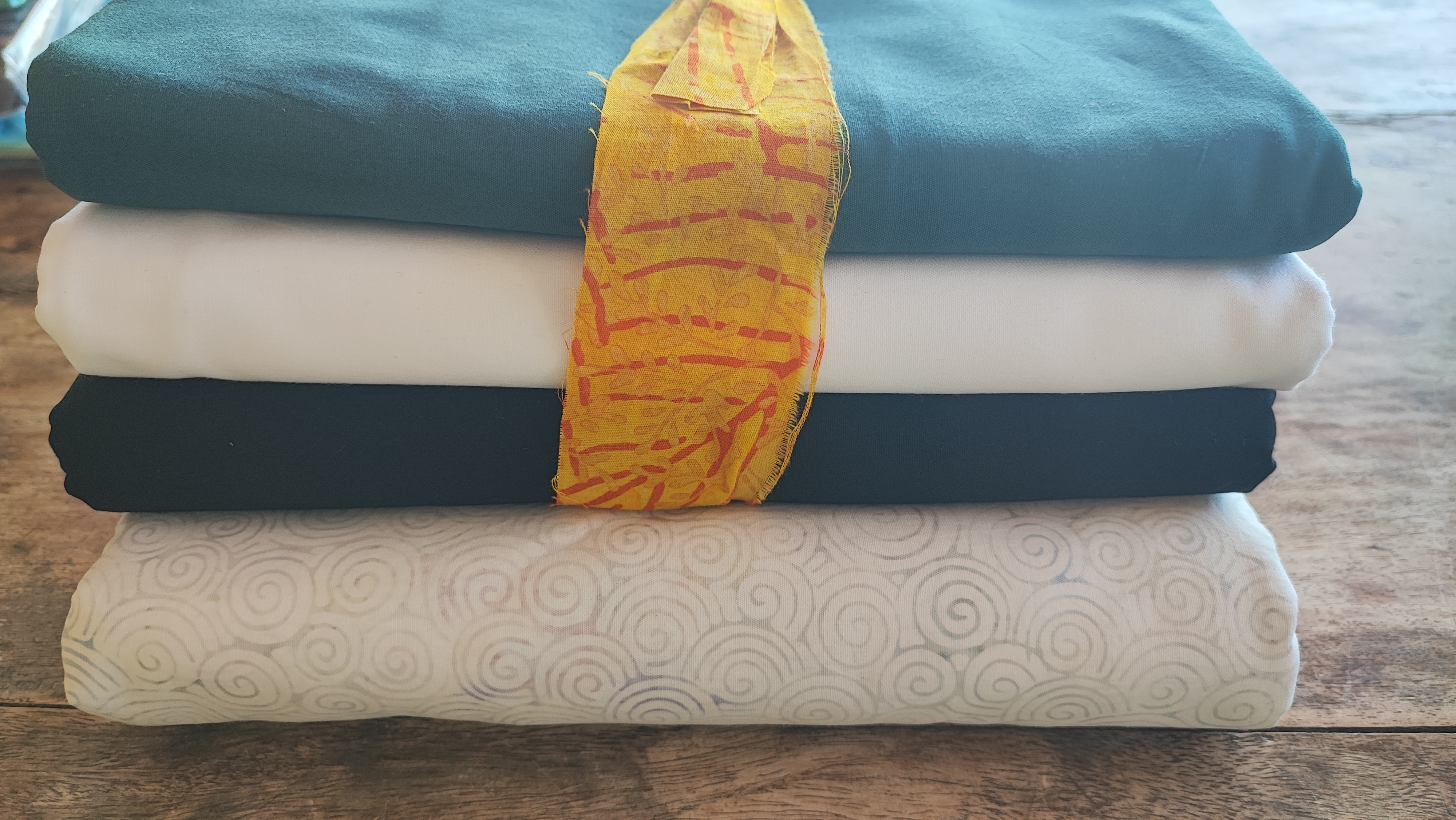 The fabrics we love and come in each package. Gray, white, black solids (6 yds each) and 6 yds from a neutral.