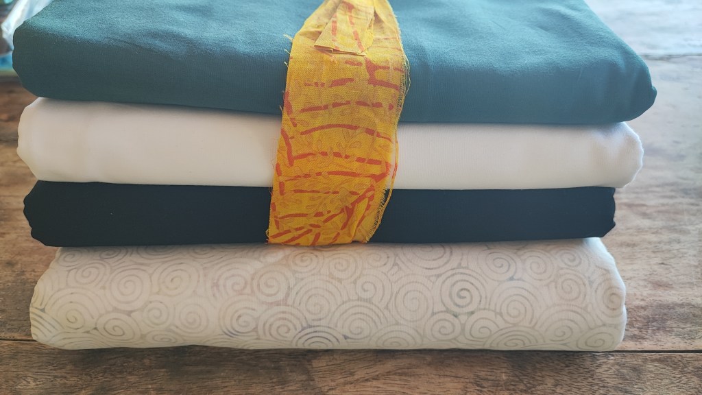 Then my Spring 2024 collection. Bubbles, curves and corners is the name and I am going to use it for September challenge. Along with the collection, two coordinated fabrics (2 yds each)