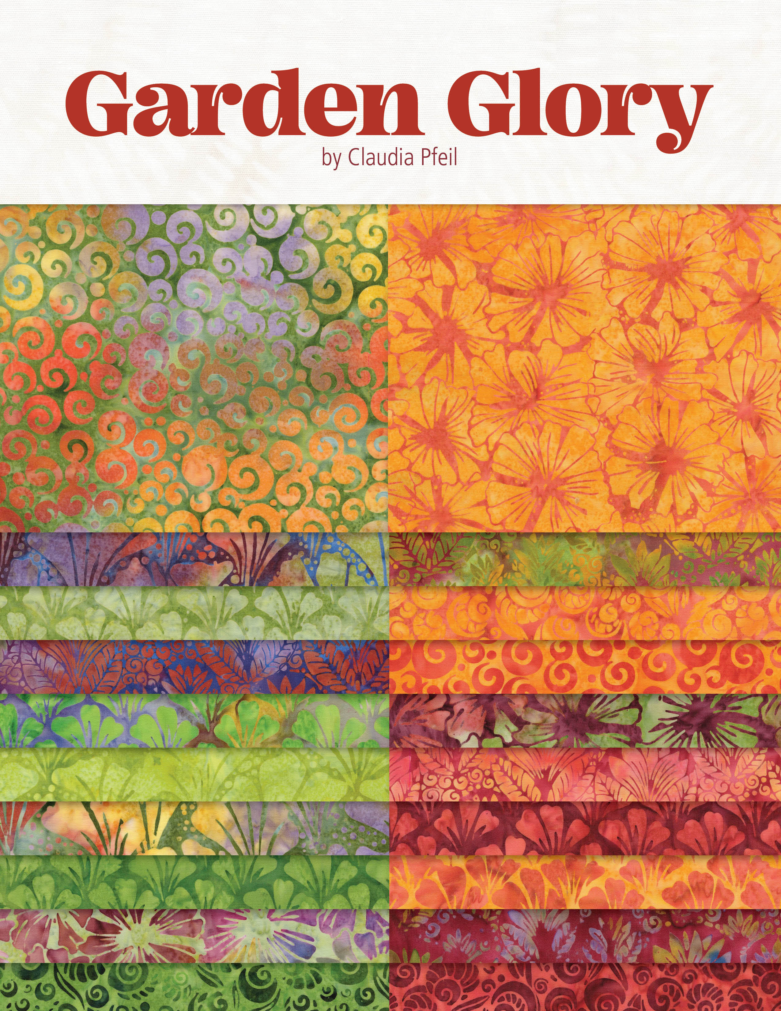 Ακολουθώντας λοιπόν αυτές τις λεπτομέρειες, έπρεπε να κάνουμε ένα κουίλτ τουλάχιστον μεγέθους κούνιας και να χρησιμοποιήσουμε τη συλλογή Ανοιξη 2025 που βρήκαμε στα κουτιά μας και στην περίπτωσή μου ήταν η “Garden Glory” by Claudia Pfeil.